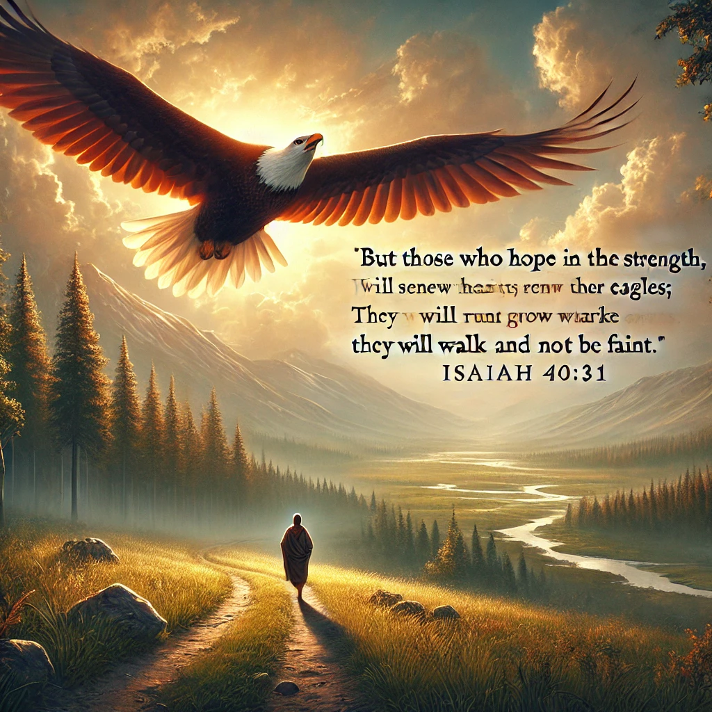 "오직 여호와를 앙망하는 자는 새 힘을 얻으리니 독수리가 날개 치며 올라감 같을 것이요, 달음박질하여도 곤비하지 아니하겠고, 걸어가도 피곤하지 아니하리로다."
