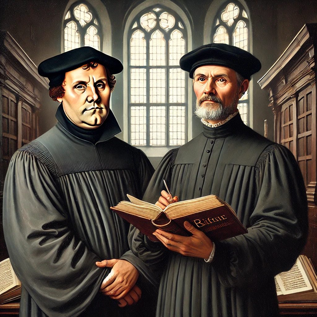 마틴 루터는 16세기 독일 비텐베르크에서 활동한 수도사이자 신학자였습니다. 당시 교회는 면벌부 판매로 성도들의 죄를 면해주겠다고 주장하며, 이를 통해 교황청의 부와 권력을 확대하고 있었습니다. 루터는 성경을 연구하면서 "오직 성경(Sola Scriptura)", "오직 믿음(Sola Fide)"이라는 교리를 주장하게 되었으며, 신앙의 핵심은 오직 성경과 믿음에 있다는 주장을 펼쳤습니다. 이 과정에서 그는 교회의 부패와 교황의 권위를 비판하는 ‘95개조 반박문’을 1517년에 발표하면서 개혁의 시작을 알렸습니다.