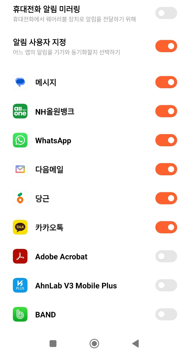 - 알림 기능: 당연한 기능이겠지만, 카카오톡, 문자 메시지, 앱 알림 등을 워치에서 바로 확인할 수 있어 편리합니다. 모든 앱 설정이 가능합니다. ls01은 최대 5가지만 선택했어야 했죠... 무료버전의 경우입니다. 유료도 그닥....인 것처럼 보였습니다.