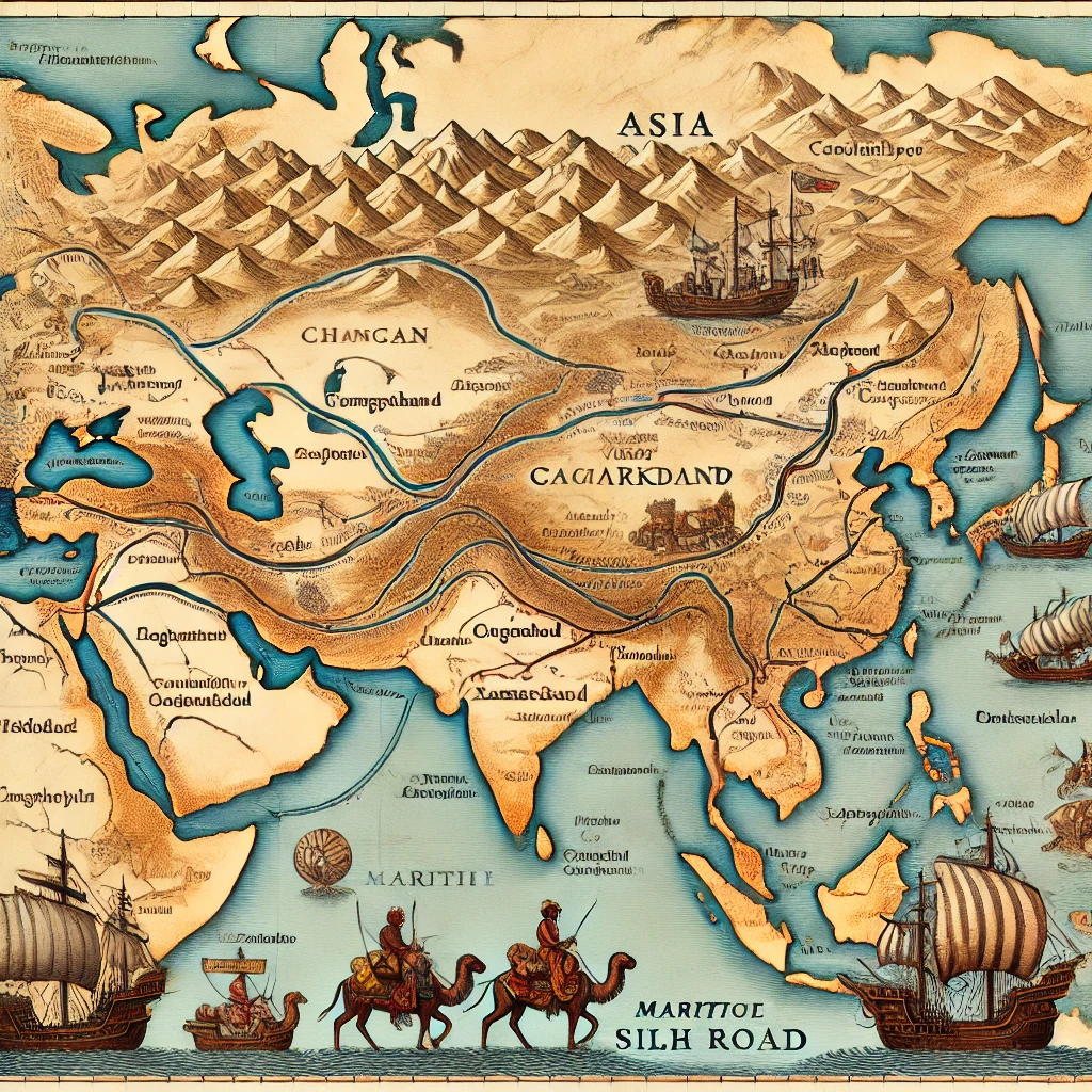실크로드(Silk Road)는 고대 동서 문명을 연결하는 중요한 교역로였다. 기원전 2세기경부터 15세기까지 사용되었으며, 주로 중국과 서역(중앙아시아, 중동, 유럽)을 연결하는 길이었다. "비단길"이라는 뜻의 실크로드는 단순한 무역로를 넘어 문화, 종교, 기술 등이 교류되는 길이기도 했다.