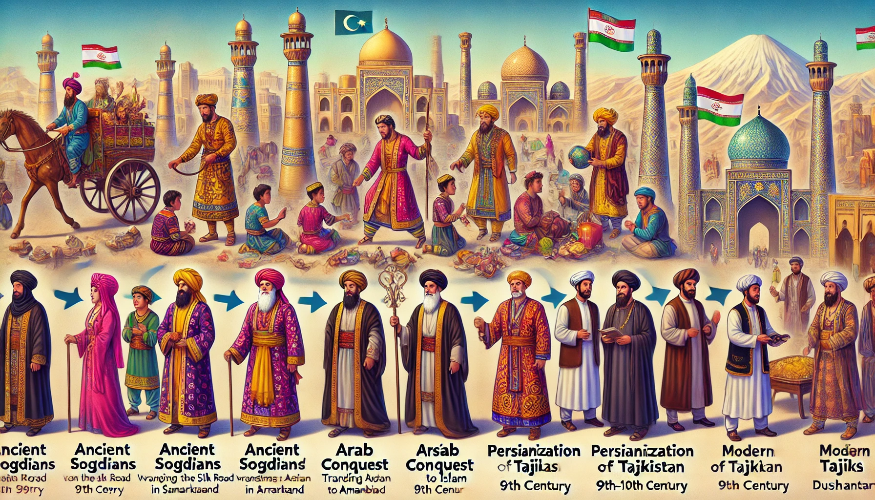 - 이후 티무르 제국, 셰이반 왕조, 러시아 제국을 거쳐 현대 타지크 민족 형성