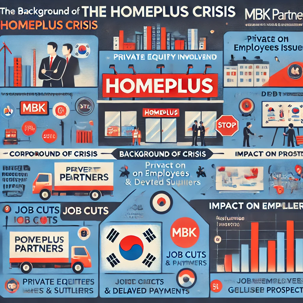 최근 홈플러스는 기업회생절차(법정관리)를 신청하며 국내 유통업계에 큰 파장을 일으켰습니다. 이 과정에서 사모펀드 MBK파트너스의 역할과 책임이 주목받고 있습니다. 이번 사태의 전개 과정과 주요 이슈를 정리해보겠습니다.