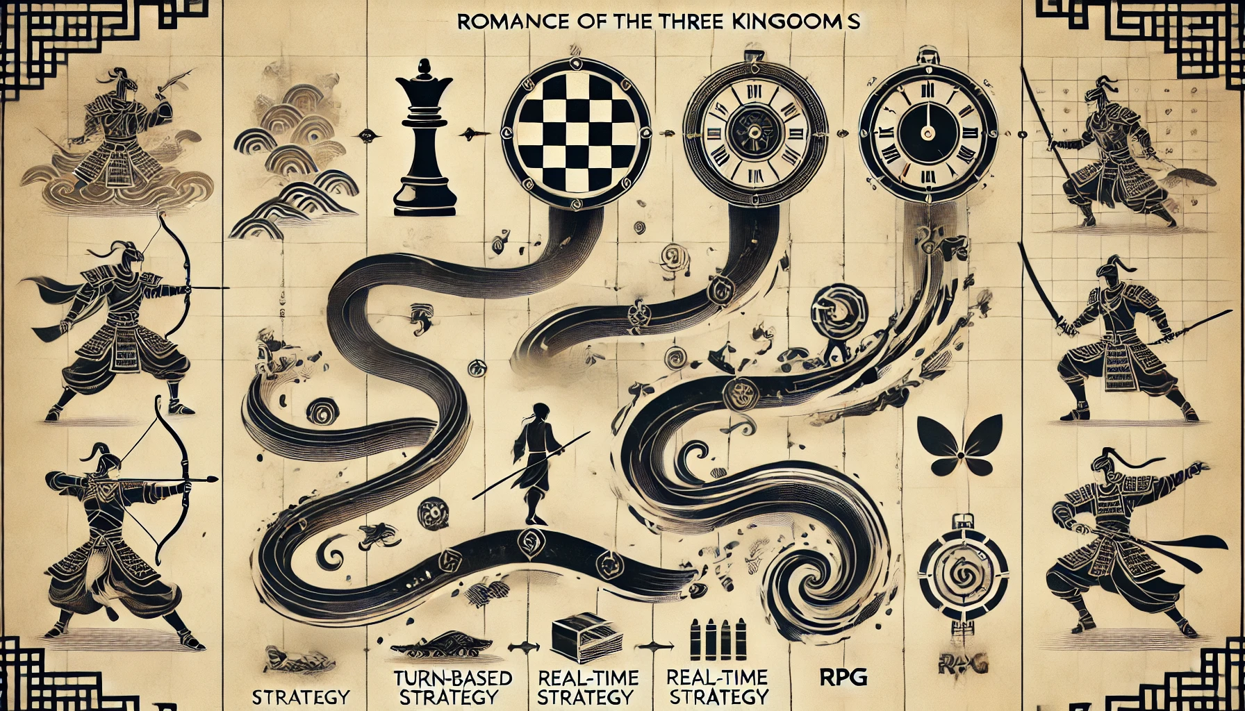 첫 번째 작품인 《삼국지》(1985)는 단순한 턴제 전략 게임으로, 플레이어는 군주 중 한 명을 선택해 영토를 확장하고 삼국을 통일해야 한다. 그래픽은 단순한 2D 픽셀 기반이었으며, 전투 시스템도 기본적인 형태였다. 하지만 전술적인 요소와 내정 시스템이 도입되어 당시로서는 신선한 전략 게임이었다.
