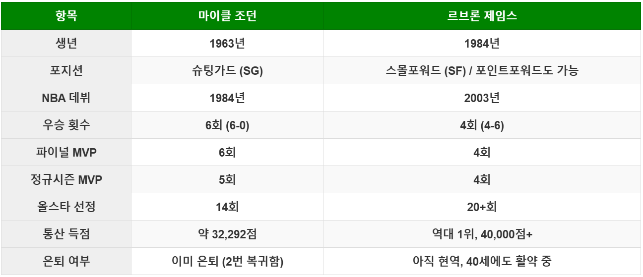 🐐 GOAT 전쟁: 조던 vs 르브론