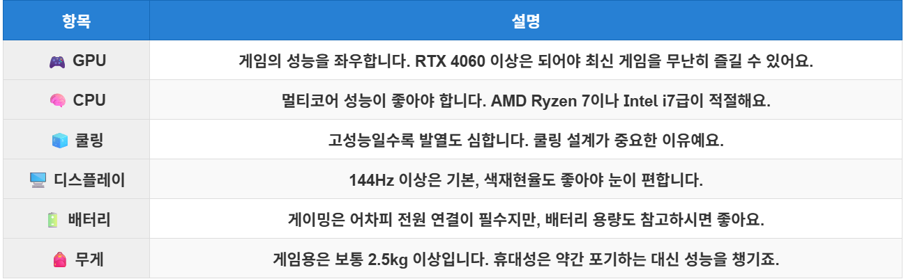 🎯 1. 나에게 맞는 게이밍 노트북은 어떤 걸까?