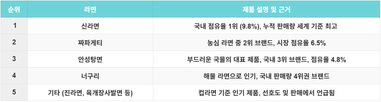 1. 국민 라면의 대명사: 오랫동안 사랑받아온 스테디셀러